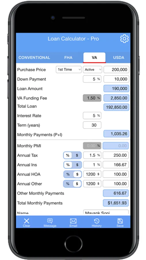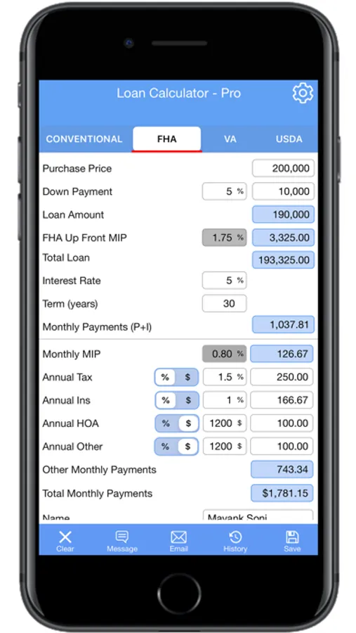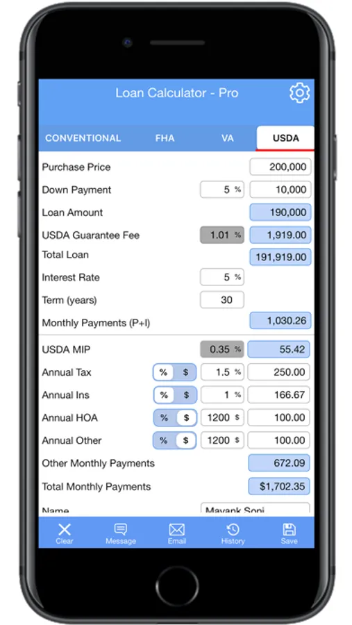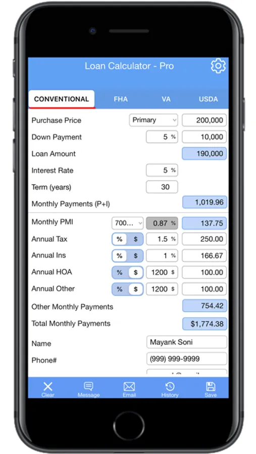 The Loan Payment Calculator calculates four most common loan types: Conventional, FHA, VA, and USDA. It is specially developed for Home Buyers, Realtors, and Mortgage Brokers to calculate the loan easily. The Loan Payment Calculator offers faster and straightforward functionality. Since it is on one screen feature, it saves time and gets the accurate calculation in seconds. The Loan Calculator app is available for iPhone and iPads.