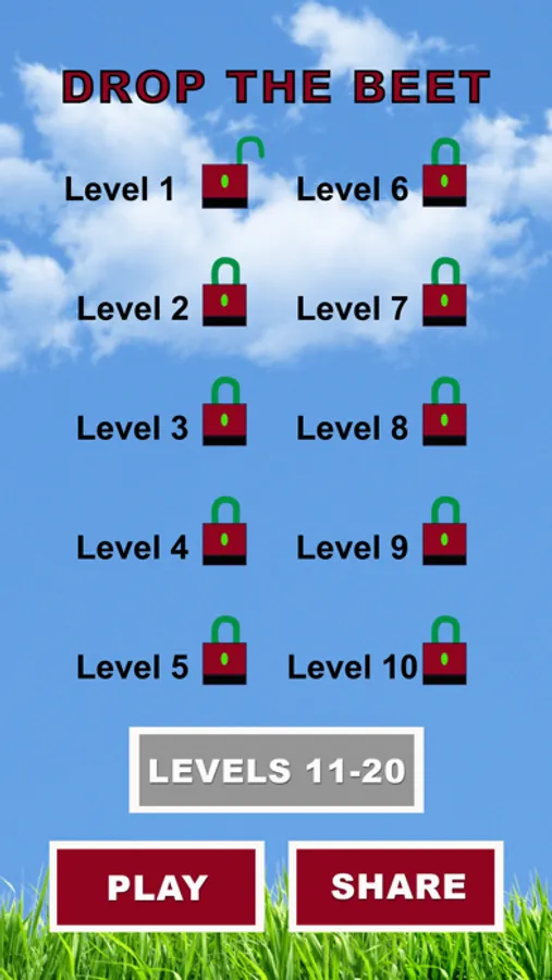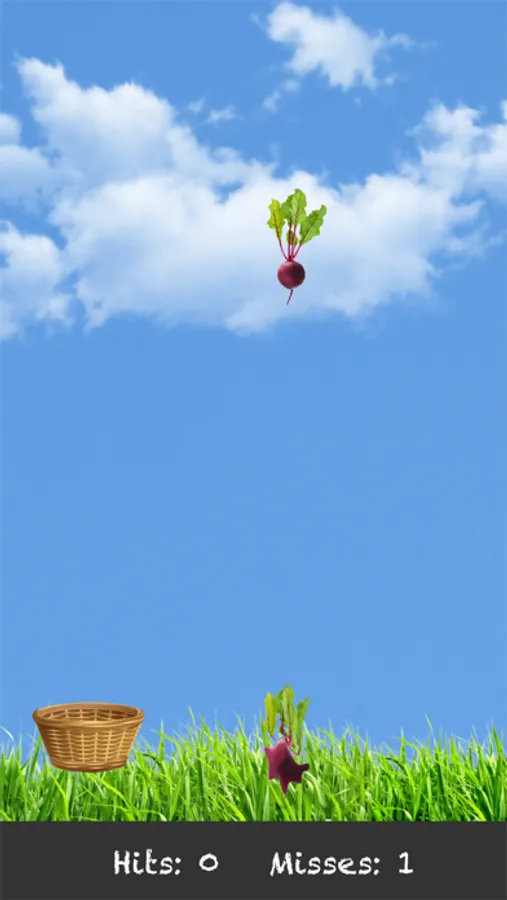 Drop some beets...into a basket! Simple and fun to play. Miss the basket and the beet splats onto the ground. Miss the basket three times in the first 10 levels and two times in levels 11 through 20, and the game is over. Drop beets into a basket ten times and advance to the next level. But beware, the basket moves faster with each level!