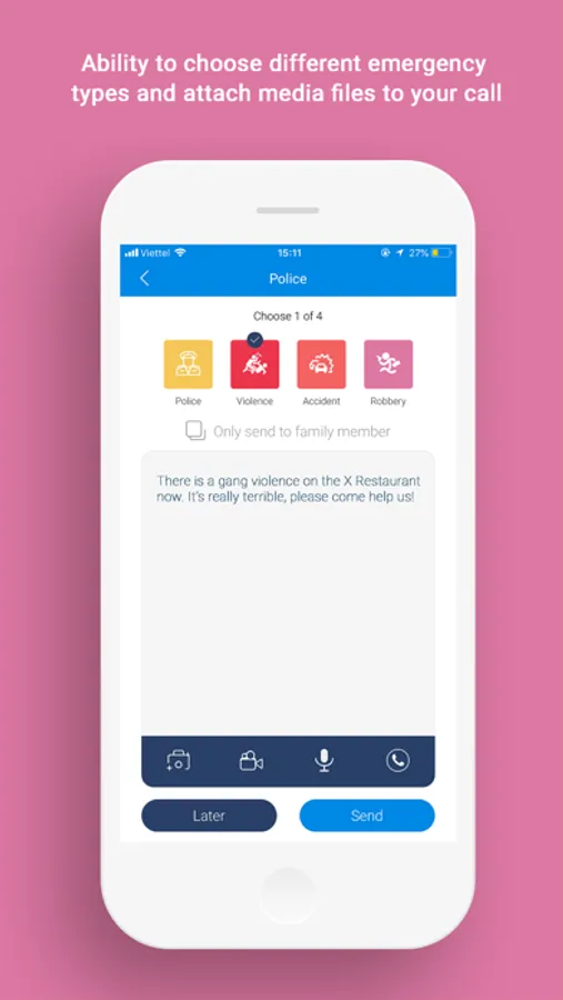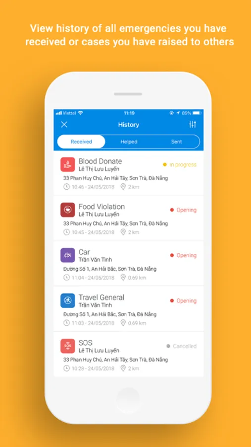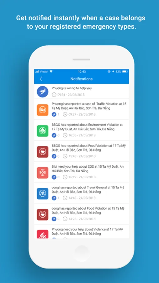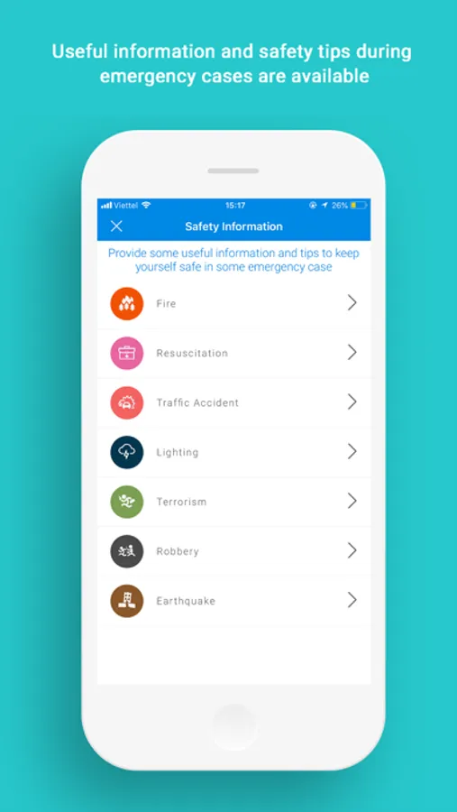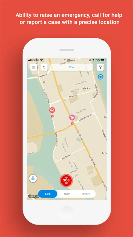 “We transform a mobile phone to a very powerful shield for each people. With just one push, you notify to the community/government your dangerous or bad situation with full description, and get exact helps/rescues fastest than ever from people just around you.“