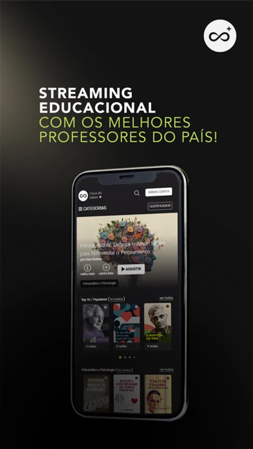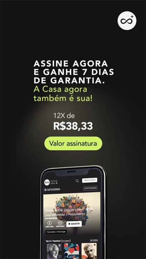 A Casa do Saber+ é uma plataforma de cursos online. Sim, um streaming educacional! É como aquela famosa locadora vermelha Norte-Americana, só que em vez de assistir a filmes e séries, aqui você encontra aulas sobre diversas áreas do conhecimento, como filosofia, psicanálise, psicologia, história, cinema, literatura, gestão, negócios e muito mais.