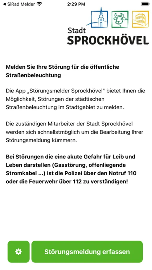 Mit der App „Störmelder Sprockhövel“ können Sie Störungen an der Straßenbeleuchtung in der Stadt Sprockhövel melden. Nach Eingang Ihrer Störungsmeldung bei der Stadt Sprockhövel, kümmern sich die zuständigen Mitarbeiter um die schnelle Bearbeitung der Meldung.