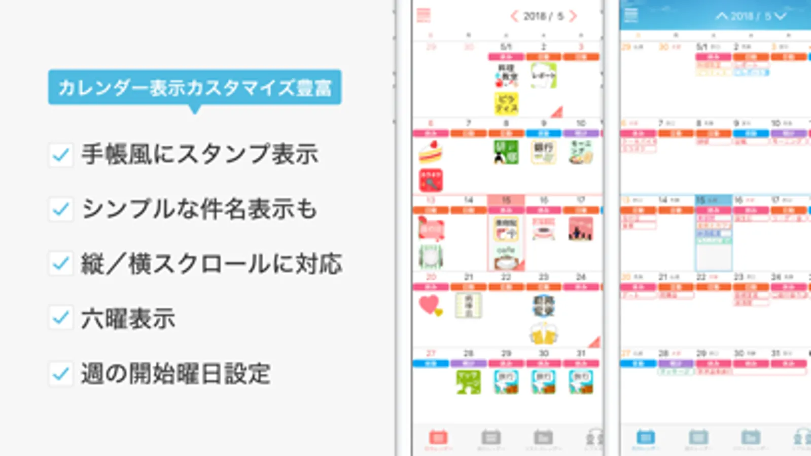 ・スケジュールのスタンプ表示か、シンプルな件名表示か切替可能。