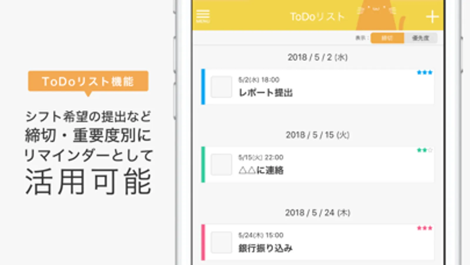 ・シフト希望の提出締切など、優先度と締切でタスクを管理!
