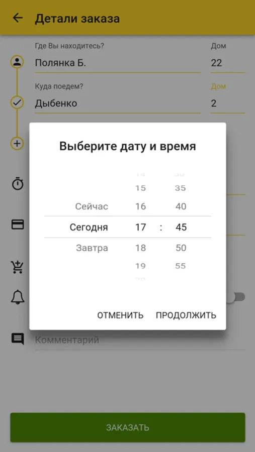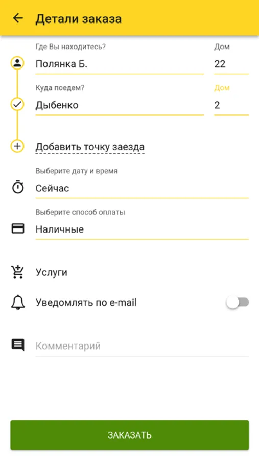 - Приложение передает заказ ближайшему водителю