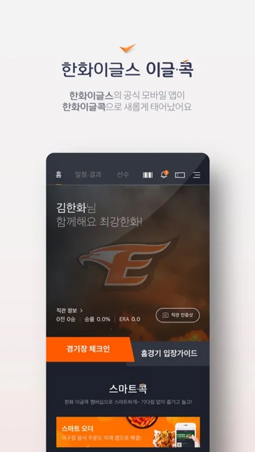한화이글스의 공식 모바일 앱 한화 이글콕