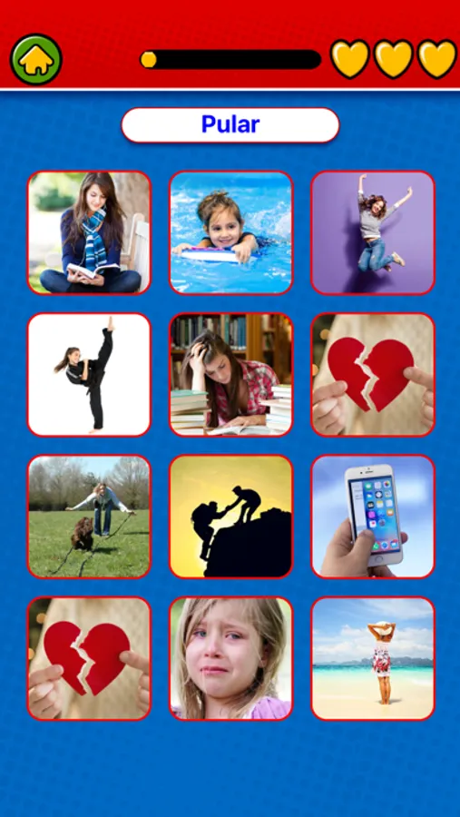 So, Game to learn Portuguese has 2 fun game. In game, you can practice phonics Portuguese, help you remember vocabulary better. One word will be automatically pronounced, you have to listen what is it, then choose true image by touching screen.
