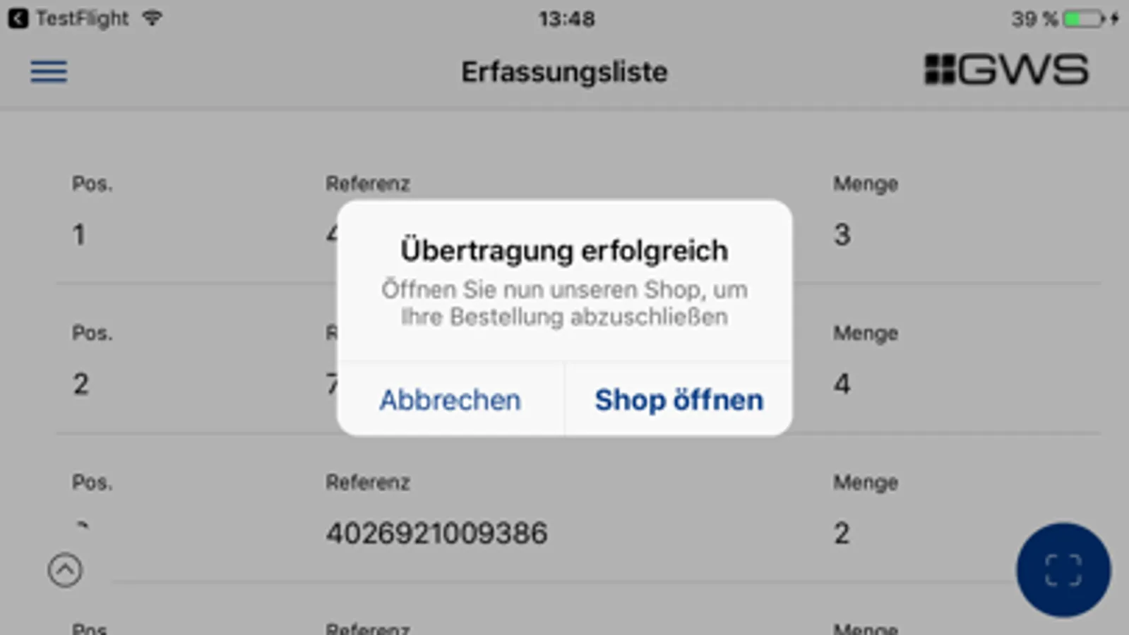 Die GWS Schnellerfassung - Shop Add-on (die SmartScan App) ist auf eine extrem schnelle und unkomplizierte Erfassung von Positionen für eine Shop-Bestellung angelegt.