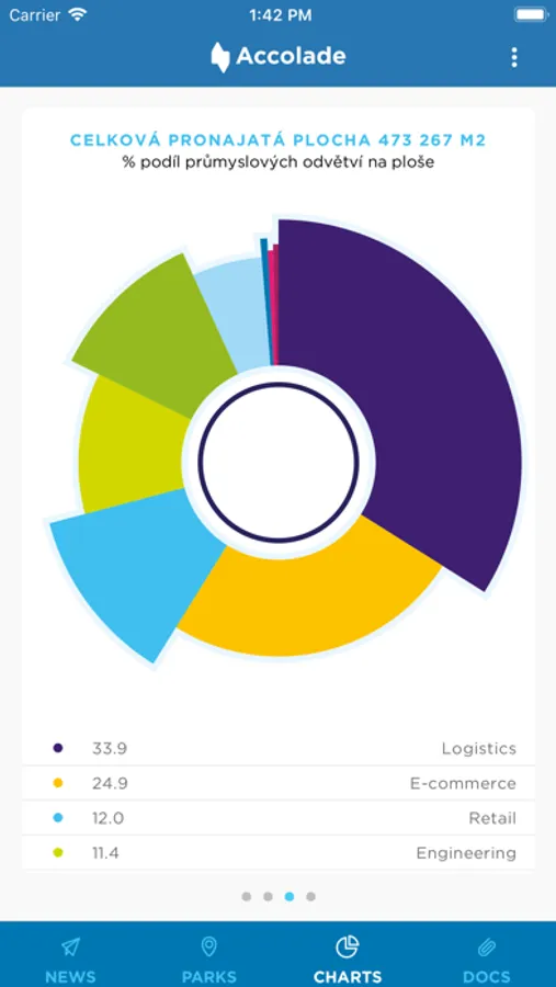 Aplikace nabízí aktuální podrobnosti o průmyslových parcích Accolade a jednotlivých budovách v nich, včetně jejich nájemců.