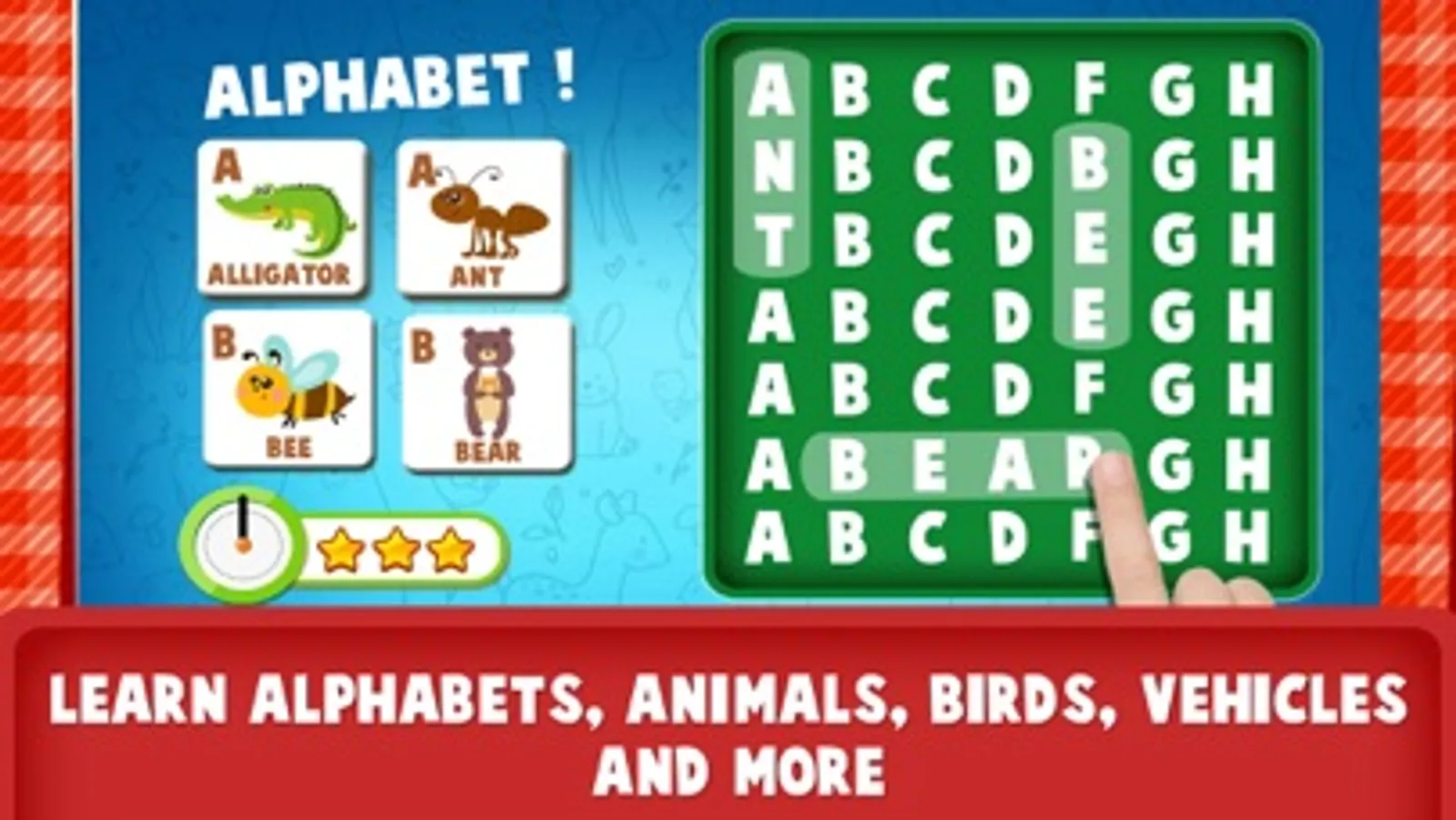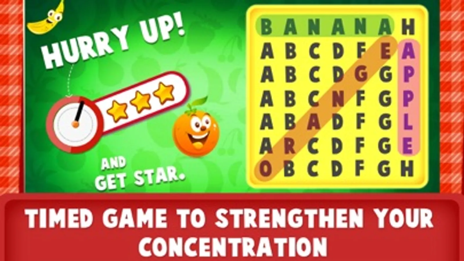 Word Search is one of the wonderful educational word games that teaches kids how to remember new vocabulary and English words. With our educational games for kids your toddlers will learn and enjoy. Good luck and Have Fun Kids!