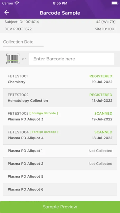 • Online specimen accessioning using Generated and Foreign Barcodes