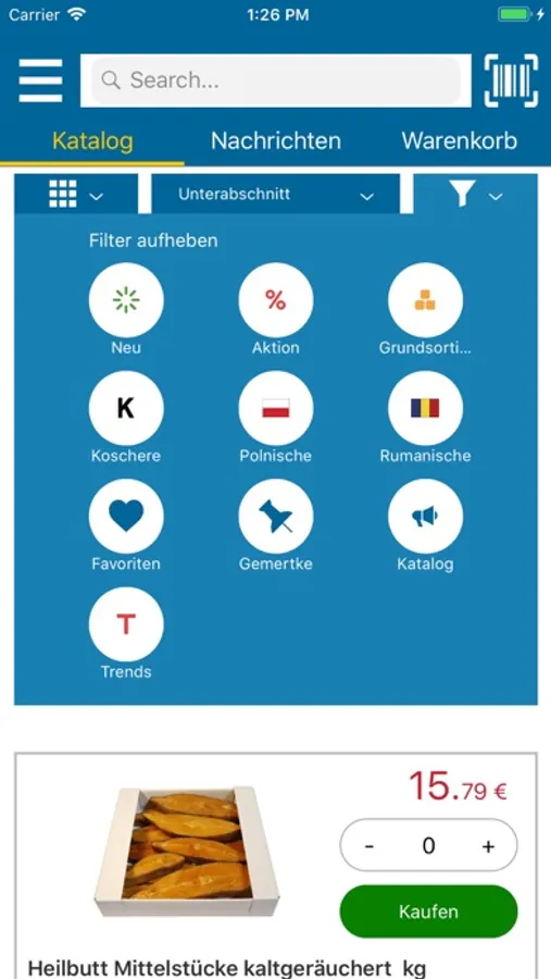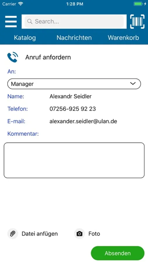 Das App ermöglicht die Bestellung am Regal. Die Bestellten Artikel werden zu Ihrem Warenkorb auf 24.ulan.de hinzugefügt.