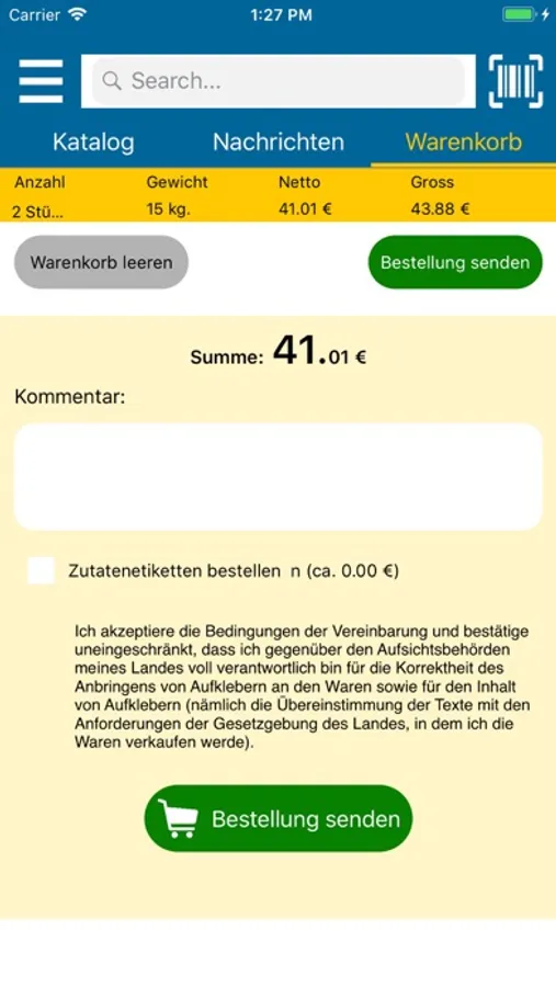 Die Bestellung können Sie entweder aus dem App oder genauso von Ihrem Rechner absenden