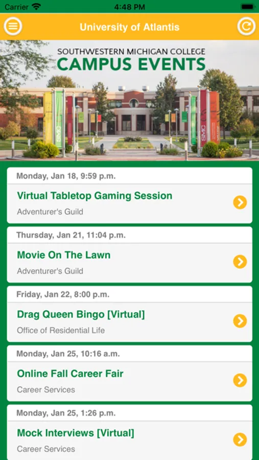 Use the Southwestern Michigan College Events app to find out what events are happening and find out how you can get involved on campus!