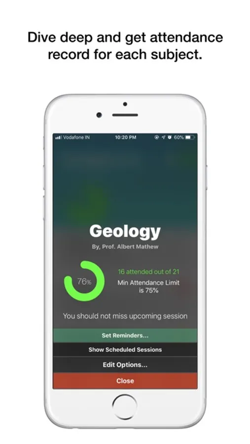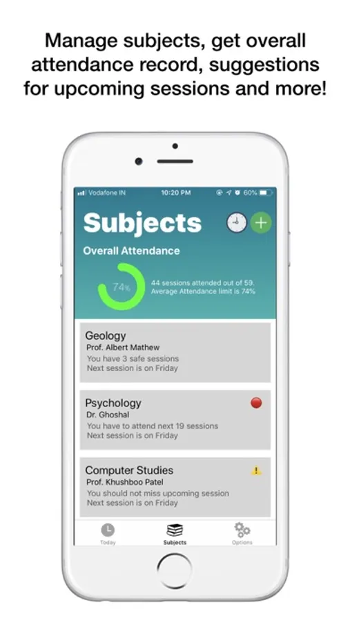- Get smart suggestions on how many upcoming sessions to attend to keep up with your attendance limits for each subject.