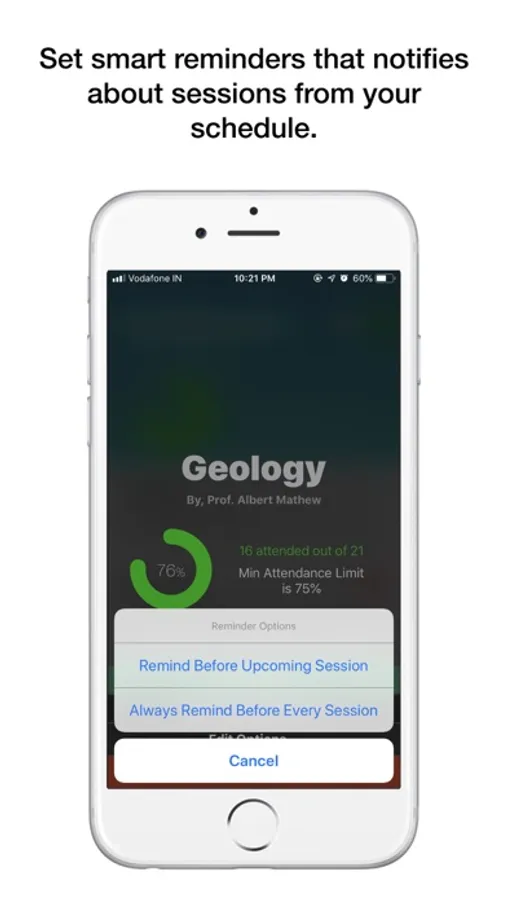 5. If you often miss sessions of a particular subject, you can set reminders for particular subject. Attendance will look up in your schedule and will remind you a day before.