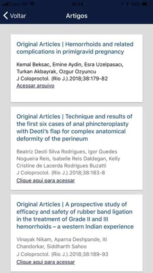 O aplicativo JCOL oferece aos usuários um acesso otimizado aos artigos científicos, permitindo assim uma constante atualização sobre importantes tópicos da coloproctologia e especialidades afins. Possibilita também que os usuários sejam notificados a cada novo conteúdo publicado.