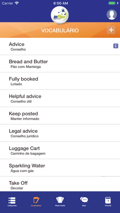 Pois saiba que isso agora é possível com o Lexical Notebook, o novo app da inFlux English School! Com ele, você pode cadastrar todo o vocabulário aprendido dentro do aplicativo, colocar Sua equivalência em português, e ainda há espaço para exemplos de uso dessa palavra em