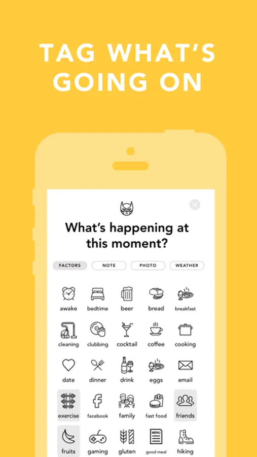 • Log a mood in seconds. Optionally log a note, photo, activities, and the weather as well.