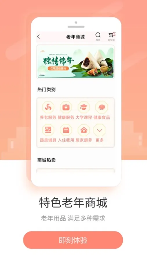 4. 老年商城:养老服务,健康服务,健康食品,生活保健,养老用品,护理器械,支持全国配送。