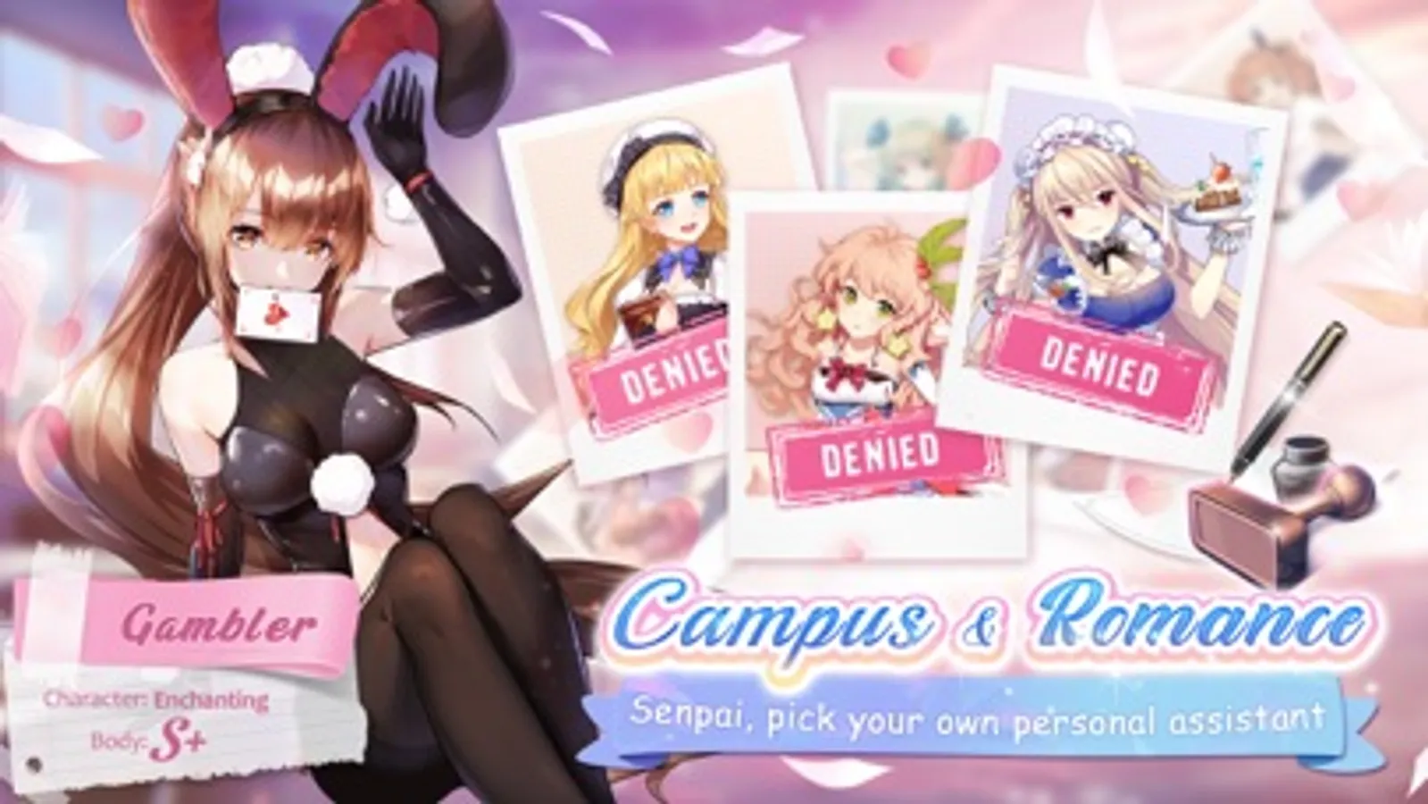 Different features waiting ahead to explore: Top floor, Quiz, Challenge, Boss fight, etc. All of these features will help you better to become the No.1 of campus. Lots of girls can be obtained in many places: Market, Girl store, Enroll, etc. More events are also the best way to enchant your girls!