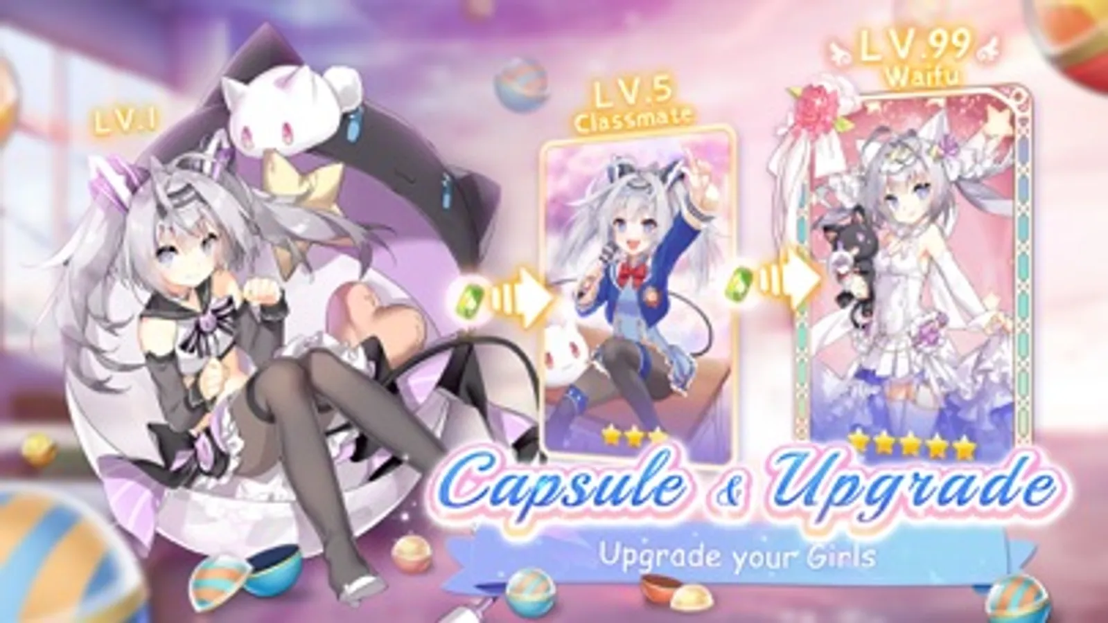 Set up your own guild with your friends, fight guild bosses and ignite your technologies for your girls. Seasonal guild war will be your best chance to prove your guild is worth in campus! If you favor in PVP, come and join guild war to level up your guild!