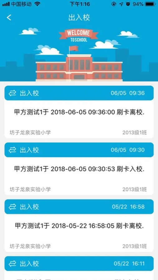 在系统联机情况下可实现出入实时监控,持卡人刷卡时,APP客户端上实时显示卡信息、刷卡时间、进出标志、持卡人员信息等相关资料,并可根据卡的有效性给APP客户端推送消息,便于及时通知家长该学生出入校园,及时保证学生安全。