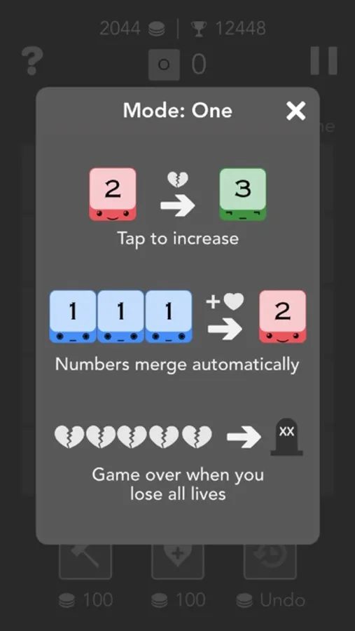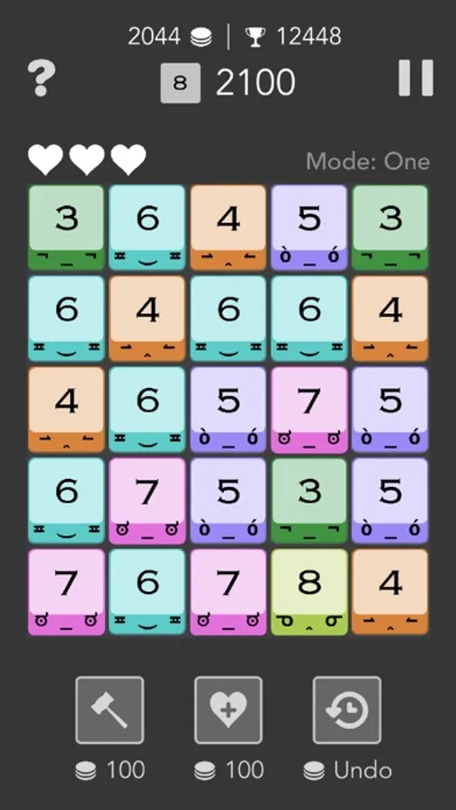 · More than 3 same numbers merge automatically, and get 1 new live.