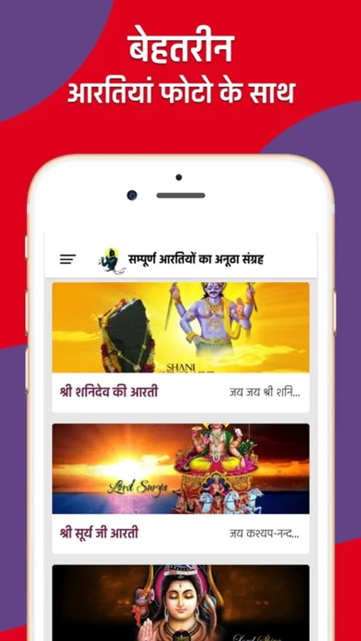 परन्तु इन सब में महावतव पुराण बात है की सबसे पहले उनकी गा कर आरती उतारी जाती है। अतः इसी बात को ध्यान रखकर हम इस एप्प में लेकर आएं है 40 देवी देवताओं की सम्पूर्ण आरतियों का अनूठा संग्रह वो भी हिंदी भाषा में, जिन्हे आप आसानी से पढ़कर गा सकते है। हमें आशा है कि आपको हमारी एप्प की यह जानकारी बहुत पसंद आएगी।