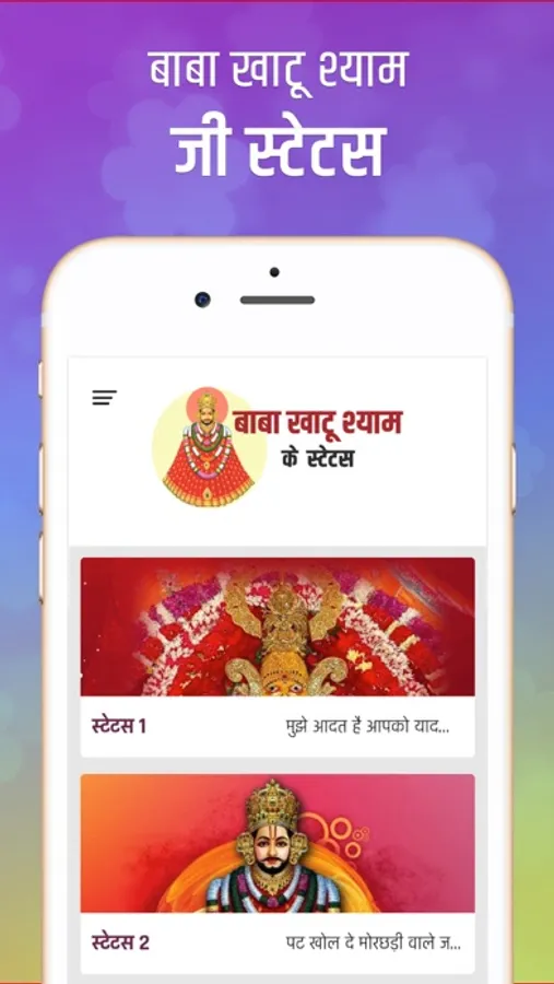 श्री श्याम पहले बर्बरीक के नाम से जाने जाते थे। वे अति बलशाली गदाधारी भीम के पुत्र घटोत्कच और नाग कन्या मौरवी के पुत्र हैं। हमारी इस एप्प में खाटू श्याम जी के 70 स्टेटस बताये गए है।