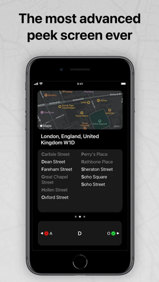 Streets Pro includes the most advanced peek screen ever created. This is a fully customisable display with multiple sources of information which adapts depending on relevance. Including: