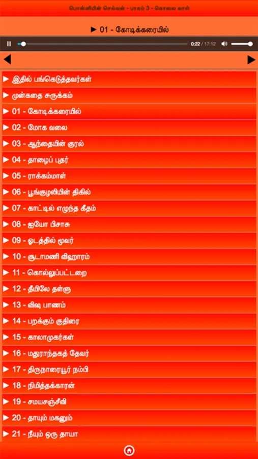 This App consists of Ponniyin Selvan - Volume 3 - Kolai Vaal (Duration : 12 hours 48 minutes) only as Audio book and full Ponniyin Selvan book. Considering the file size and quality each volume are being released as separate app for convenience of the users. Each Volume can be downloaded separately.