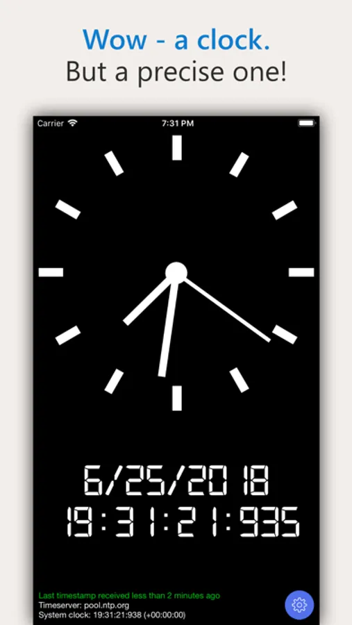 Ever wanted to know exact current time to celebrate someone's birthday or New Year's Eve? Or simply to synchronize clocks? AtomicClock provides exact times based on NTP servers which are getting their time directly from atomic clocks!