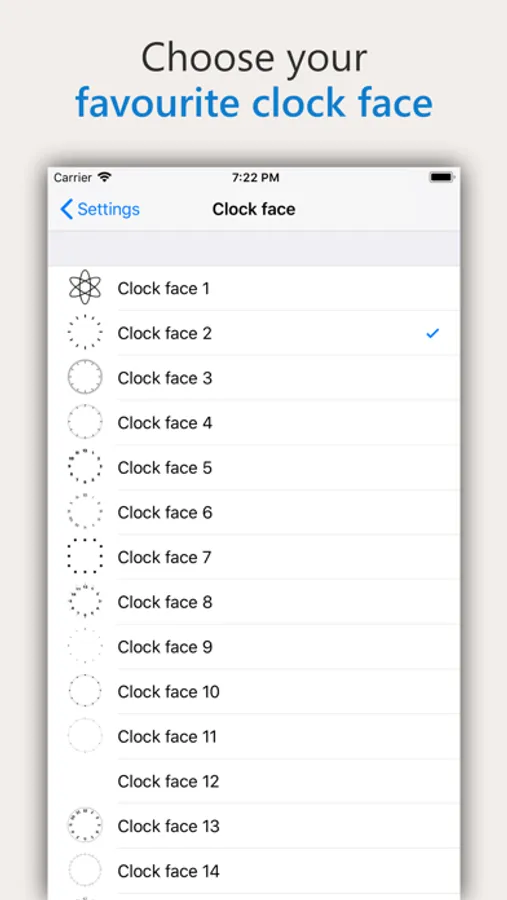 • choose between different clock faces