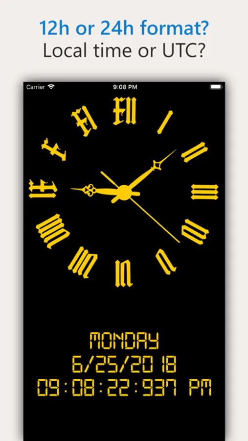 • switch between local time and UTC, 24-hour and 12-hour clock