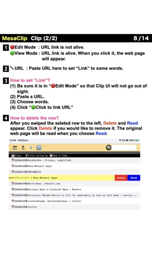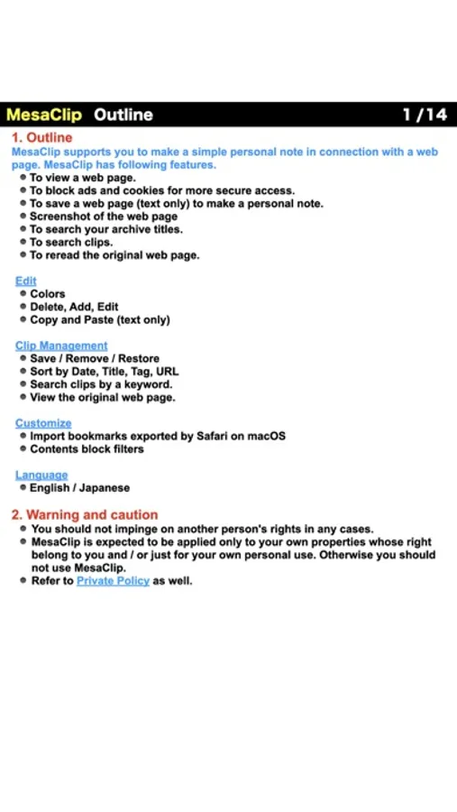 MesaClip supports you to make a simple personal note in connection with a web page. MesaClip has following features.