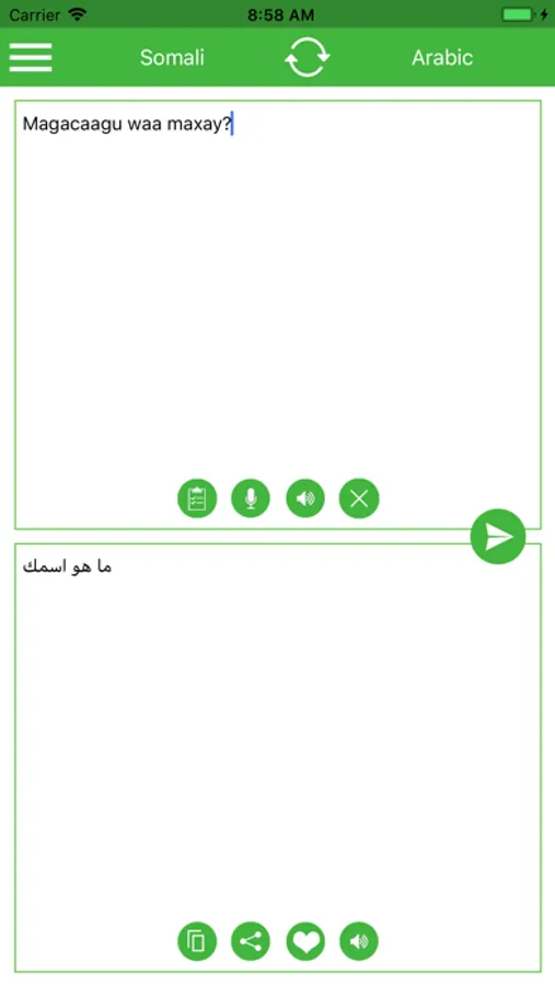 Bonus Feature – Learn and Master the pronunciation as Somali Arabic Translator has in built audio feature. Hear the translated text and conveniently communicate with your friends, girlfriends, boyfriends, family members or tourists.