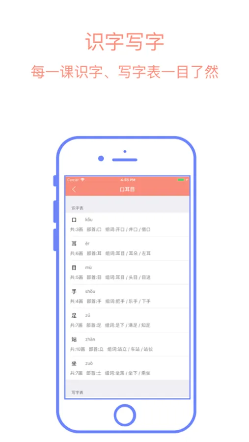 “好未来学习机”有声点读教材,一套能随身携带的智能电子课本,带你准确朗读课文和掌握生字发音;写字表和识字表中所有的字都有每个字的笔顺,笔画,组词等详尽的描述,使用iPhone或iPad就可随时随地学习。是小朋友自学的好老师,把家长从繁琐的辅导解答中解放出来!