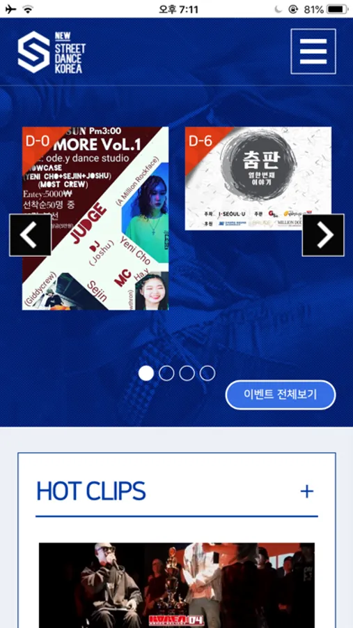 2018년 6월부터 런칭한 뉴스트릿댄스 코리아(스댄코)는 현재 우리나라에서 열리는 모든 스트릿댄스 관련 이벤트 (배틀, 퍼포먼스대회, 워크샵, 파티 등등) 정보를 제공하고 있는 국내 유일한 어플이자, 웹사이트입니다. 현재 누적 조회수 10만을 바라보고 있는 많은 관심과 사랑을 받고 있습니다.