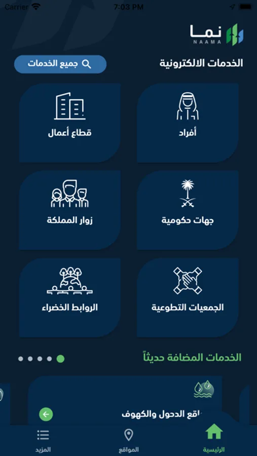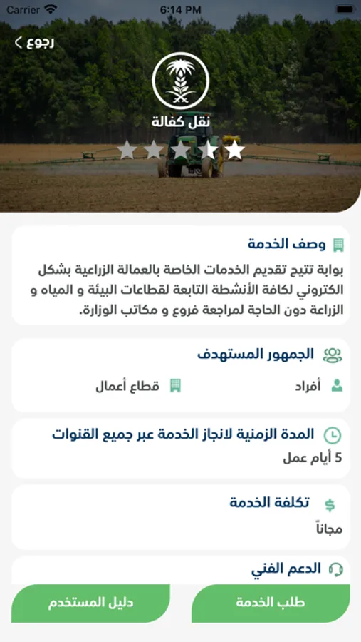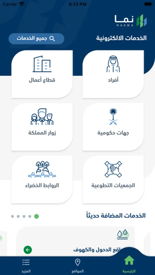 تطبيق وزارة البيئة والمياه والزراعة. يشمل خدمات مثل المنتجات والمدخلات العضوية ، الفعاليات، المنتجات الزراعية، وبلاغات المياه و الزراعة والحيوانية و تحديد موعد لزيارة مقر الوزارة وفروعها وغيرها الكثير ، كما أنه يوفر دليل الخدمات لسبعة قطاعات: المياه، الزراعة، الثروة الحيوانية، البيئة، الثروة السمكية، الاراضى والمساحة و خدمات عامة خاصة بكل من الأفراد وقطاع الأعمال والجهات حكومية و زوار المملكة و الجمعيات التطوعية