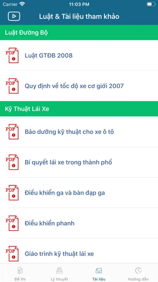Ứng dụng cũng sưu tầm rất nhiều tài liệu về luật GTĐB, cách thức thi, mẹo thi, và cách để bạn ghi nhớ câu hỏi tốt hơn.