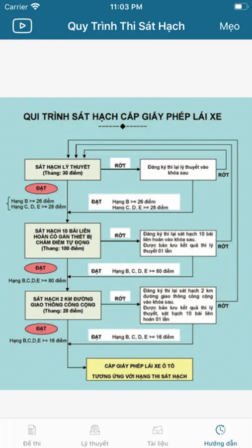 Ứng dụng này sẽ giúp bạn biết quy trình cụ thể để thi bằng lái xe. Phổ biến nhất hiện nay là hạng bằng lái B2, với tấm bằng này thì bạn được phép điều khiển các loại ô tô gia đình tới 9 chỗ ngồi (cả xe số sàn và số tự động) và xe tải với trọng tải tới 3,5 tấn.