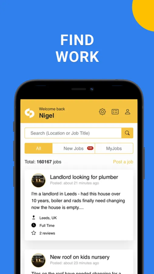 To get more work simply set your work area along with your trade and instantly begin receiving opportunities to quote.