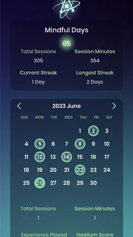 Track your mindful minutes, usage streaks, session stats, and more with your very own user dashboard