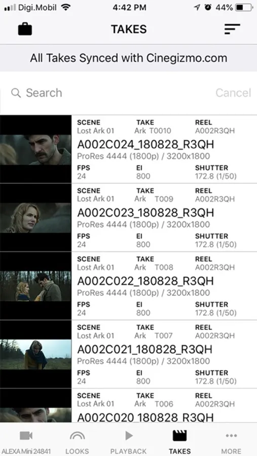 The compatibility with ARRI ALEXA Mini and Amira makes life on set much easier. Once connected to the camera the app will instantly log each take as the operator hits record and stop on the camera. Framegrabs can also be enabled from Settings, thus the app will take a framegrab for each take.