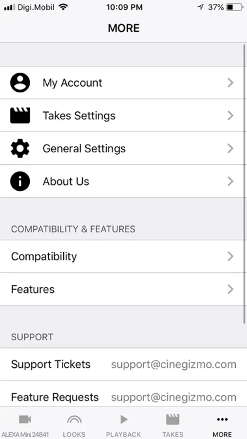 The free version of CineControl lets you monitor your camera settings only. To have full control over the camera through the app the user is required to have a valid account with Cinegizmo