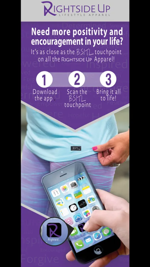 * Now enjoy a positive or motivational video anytime and anywhere while wearing Rightside Up apparel.
