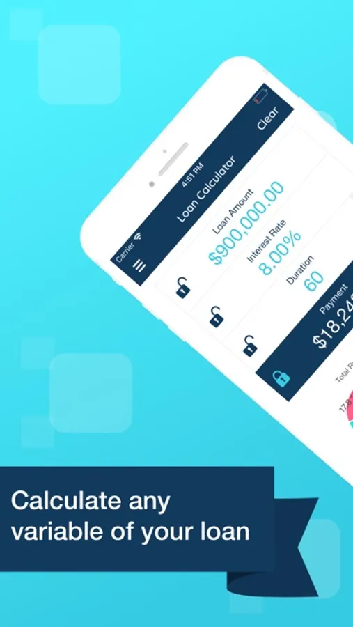 • Calculate any variable of your loan: Interest rate, monthly payment, loan duration or loan amount