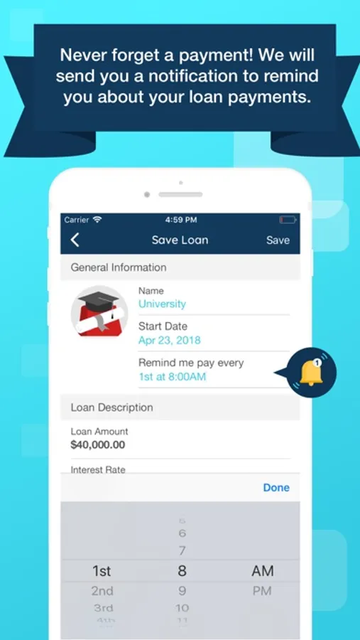 • Our App includes notifications; we will send you a notification to remind you about your loan payments