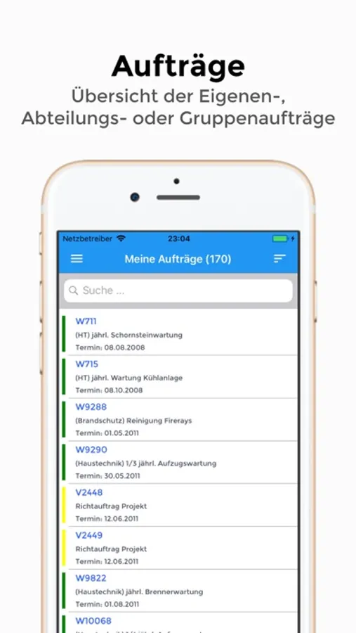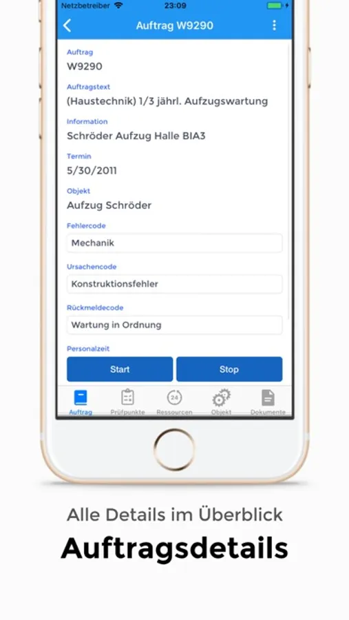 Definieren Sie zyklisch auszulösende Inspektionen und Wartungen, erfassen Sie Störungen, Reparaturen und Ereignisse wie Umbauten, Abnahmen, Audit-Maßnahmen, etc. Dabei können Ressourcen wie Personalzeit, Ersatzteile, Messungen, Werkzeuge u.a. zugeordnet sowie Ursachen-, Fehler- und Rückmeldecodes erfasst werden.
