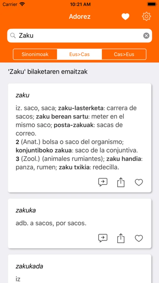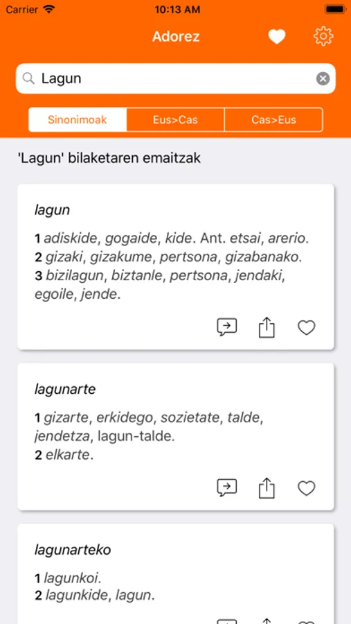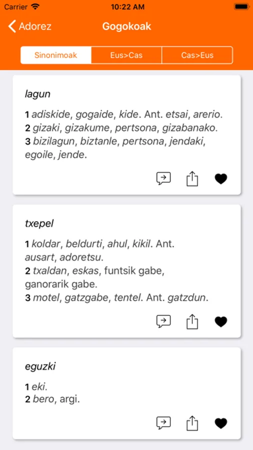 Adorez Hiztegia aplikazioaren bidez hainbat hitzen esanahiak eta itzulpenak ikusi ahalko dituzu zure mugikorrean, interneteko konexioa eduki edo ez.